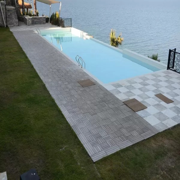 Yüksek yoğunluklu polietilen plastik zemin üzerine , paslanmaz çelik vidalar ile monte edilen Ahşap Karo Deck’ler ıslak zeminlerde ahşabın altında su birikimini engeller. Özel üretilmiş klips sistemi sayesinde montaj maliyeti düşük ve uygulaması pratiktir.